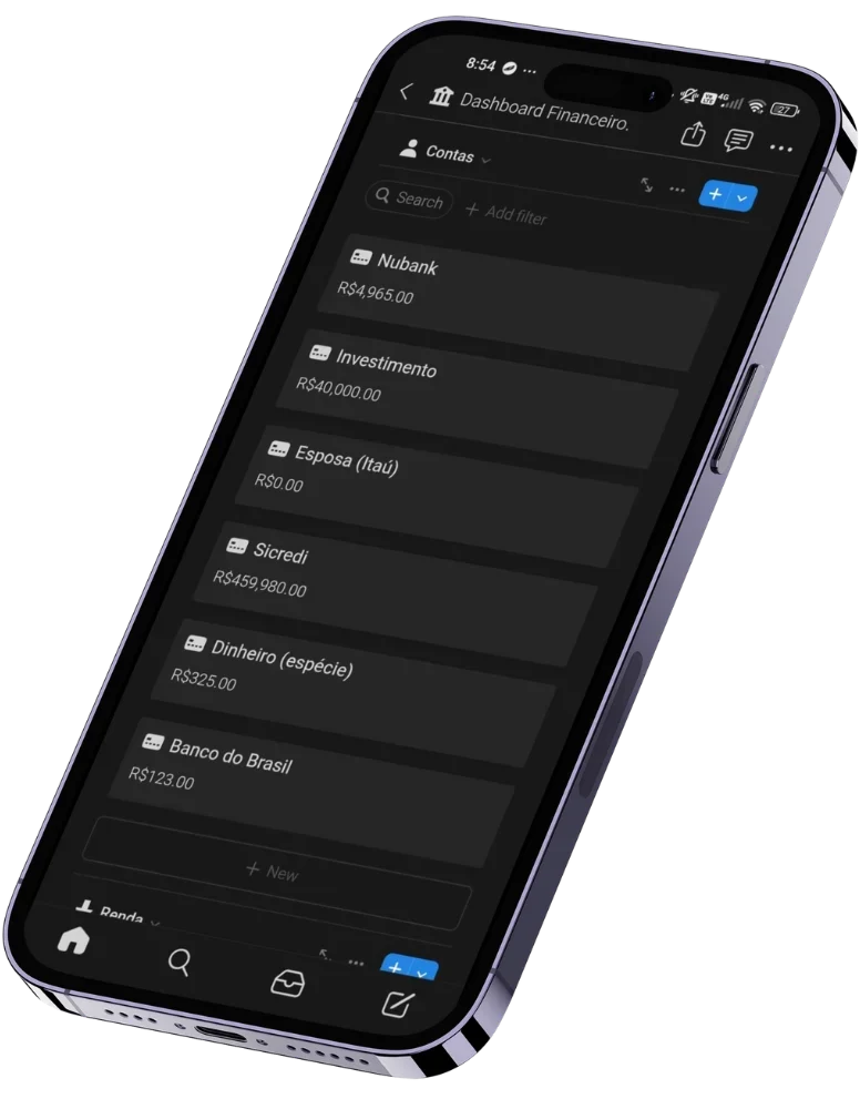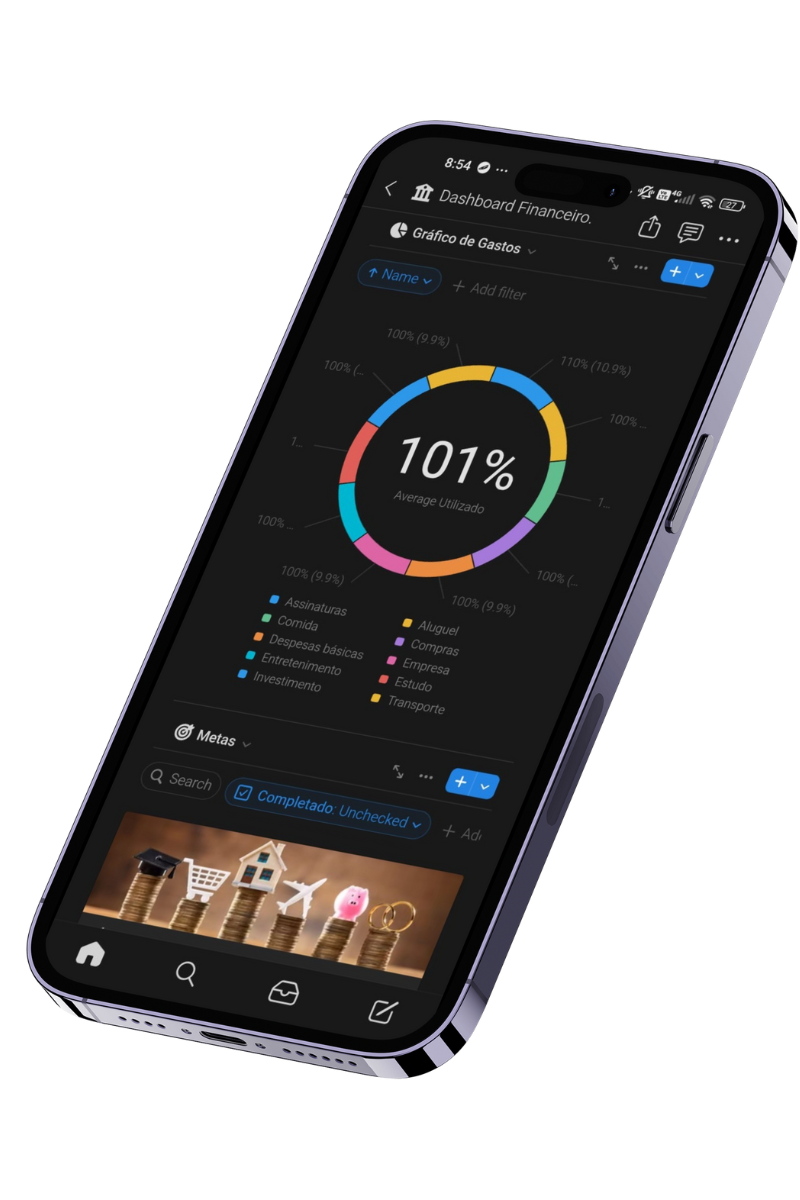Aqui você encontrará uma visão geral completa de suas finanças, categorizada e pronta para ser monitorada de forma prática e intuitiva.